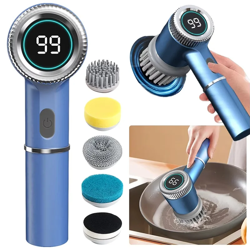 5. Convenient Package Contents: Everything needed to start cleaning immediately is included in the package: one main unit, five brush heads, and a charging cable. Enjoy the convenience and effectiveness of this portable electric scrubber right out of the box.