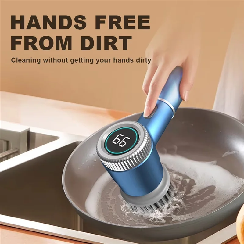 2. Versatile Brush Heads: Equipped with five interchangeable heads, our wireless power scrubber caters to diverse cleaning needs. From tight crevices to broad surfaces, this tool offers different brush options to effectively and easily scrub kitchen and bathroom areas clean.