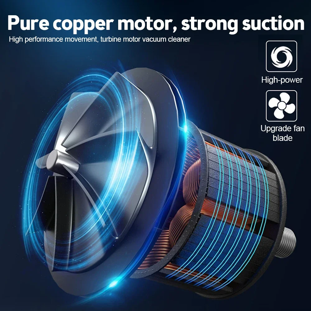2. 120W high-power motor with strong suction, 50000Pa strong suction, high-speed driving fan impeller rotation, efficient dust collection