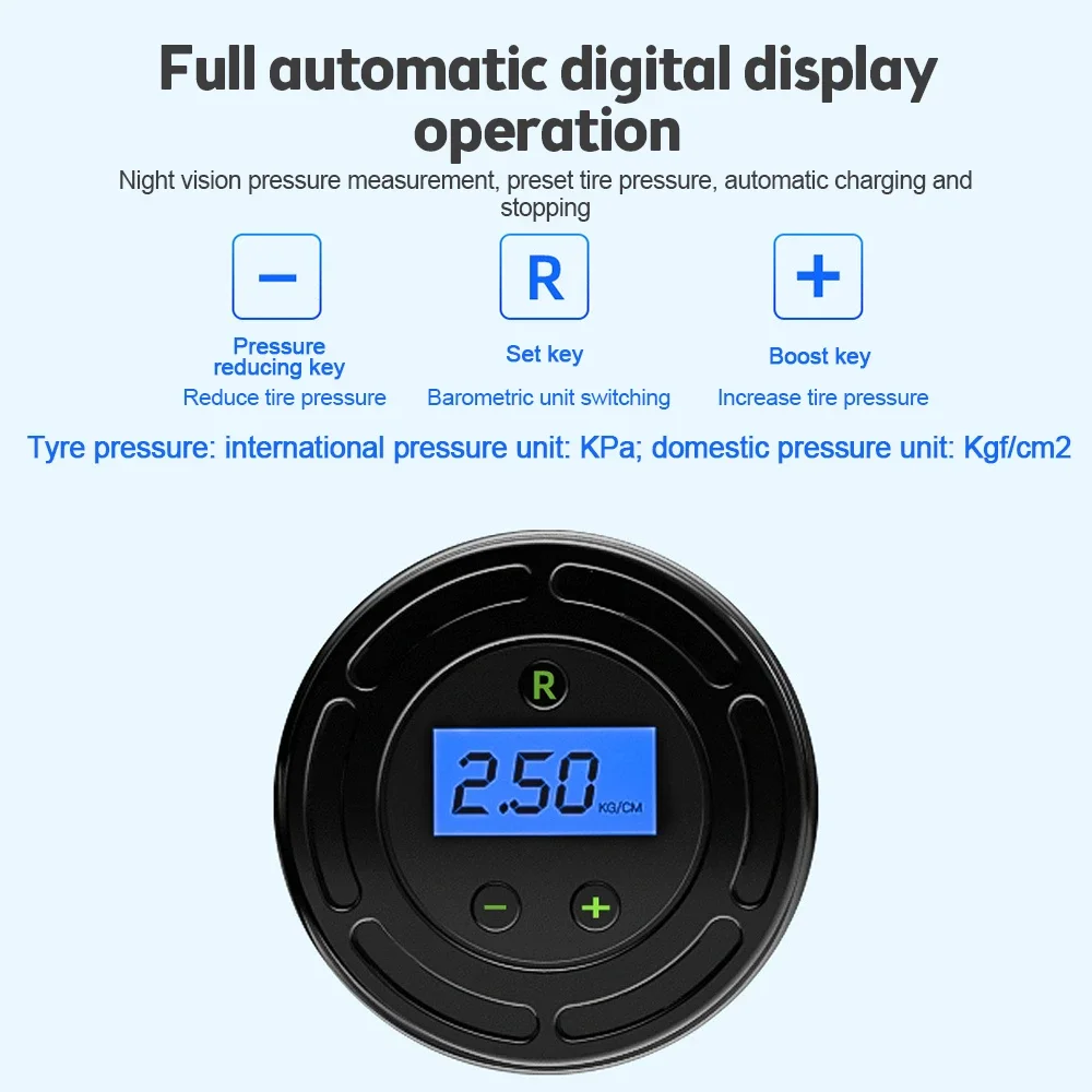 5. Night vision pressure measurement, preset tire pressure, intelligent digital display, automatic charging and stopping