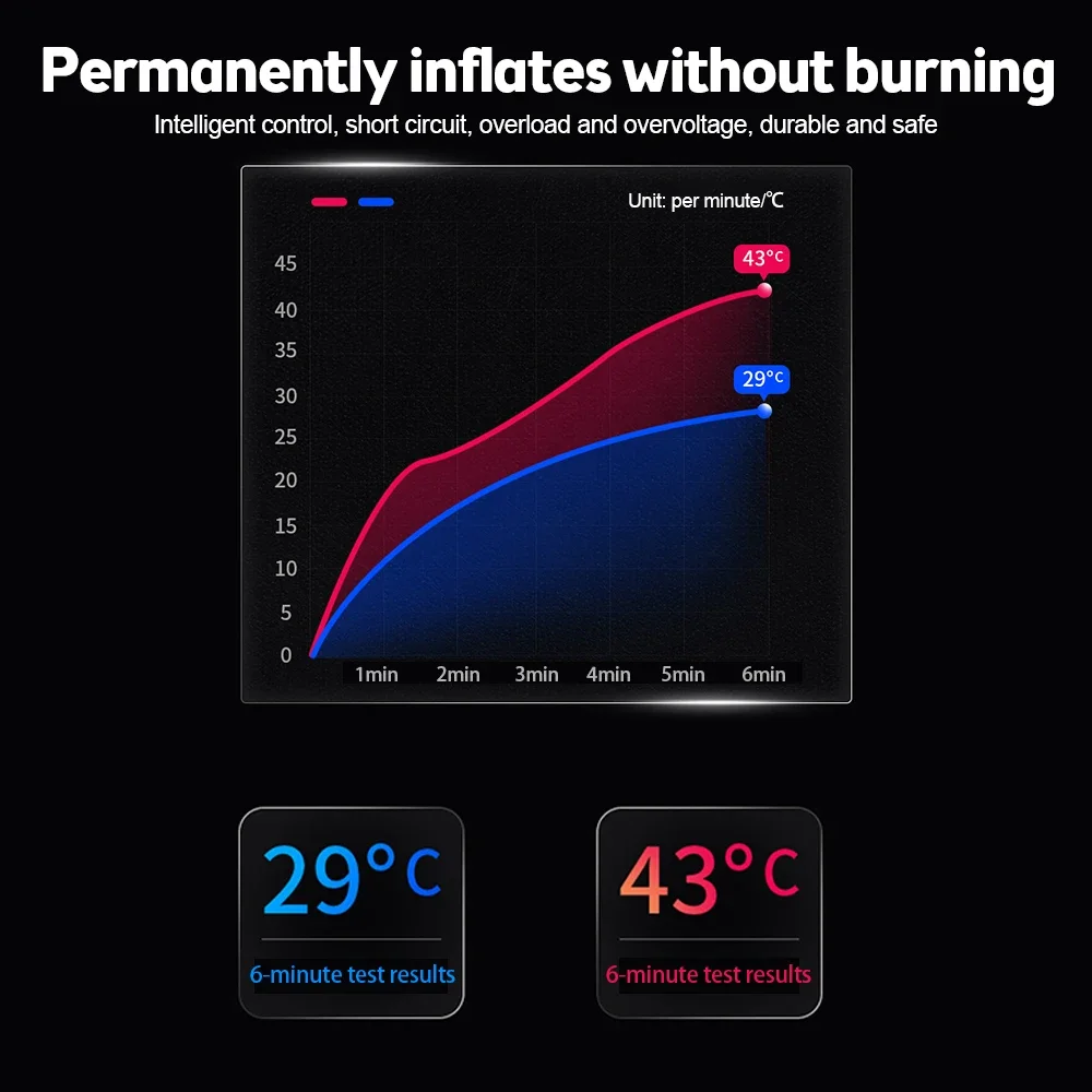 7. This product supports functions such as dust suction, inflation, lighting, pressure measurement, intelligent inflation and intelligent shutdown.