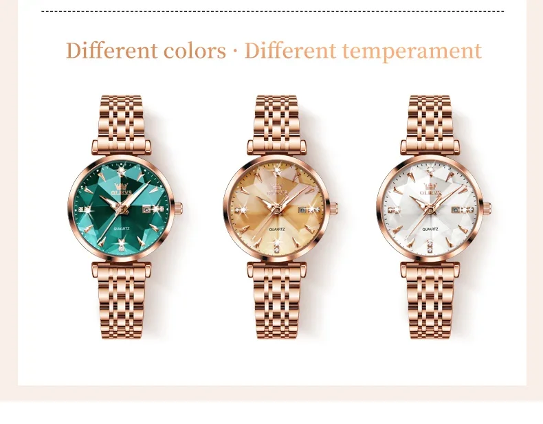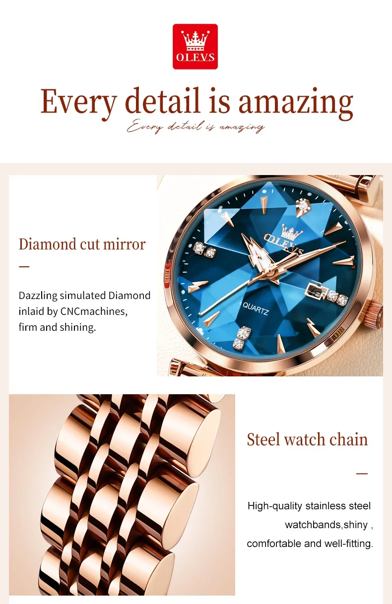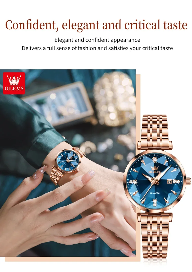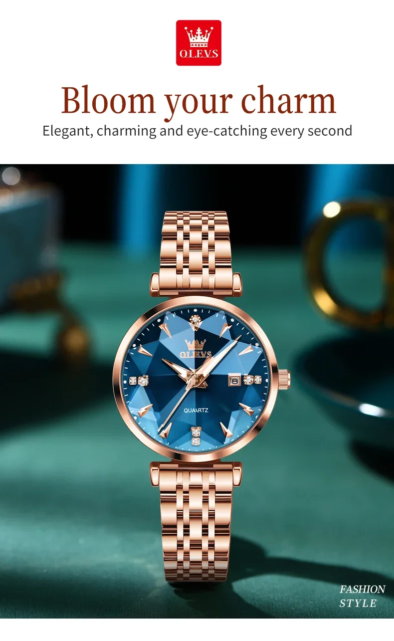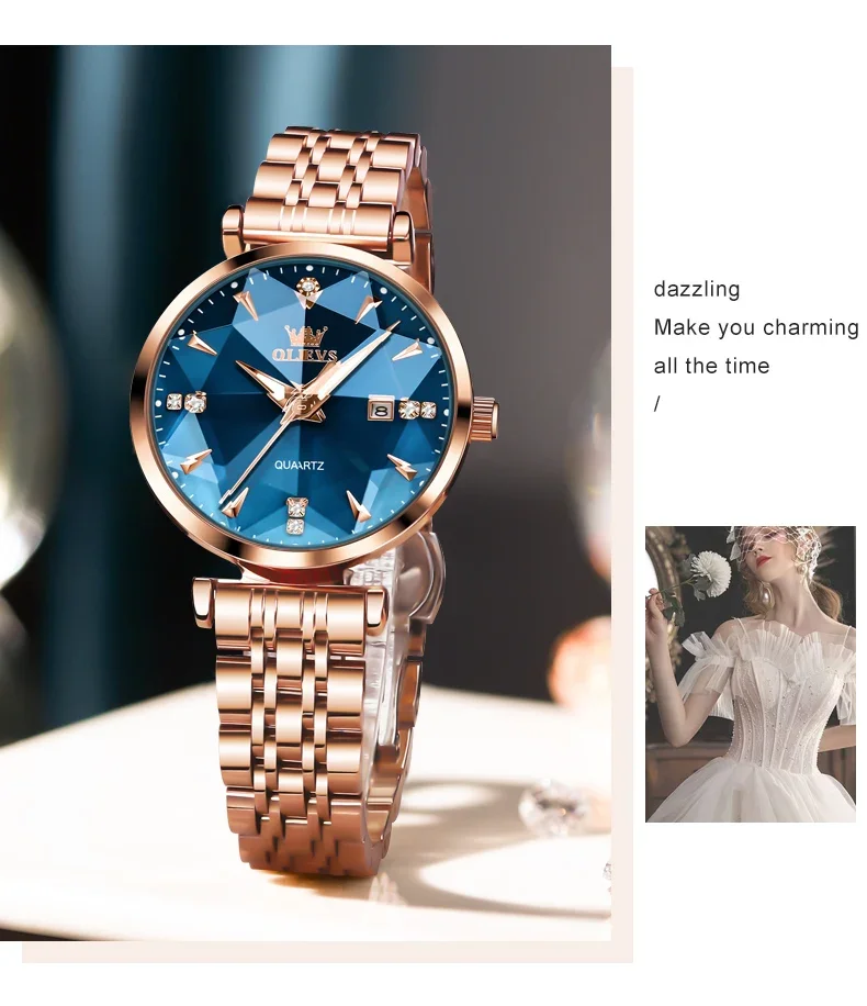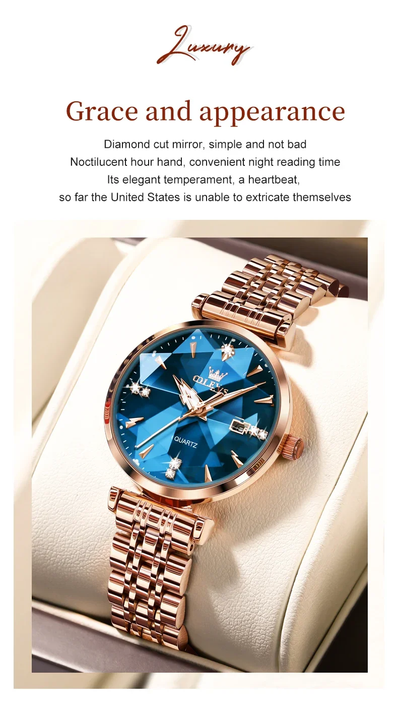 Olevs 5536 relógio de quartzo para mulheres luxo losango