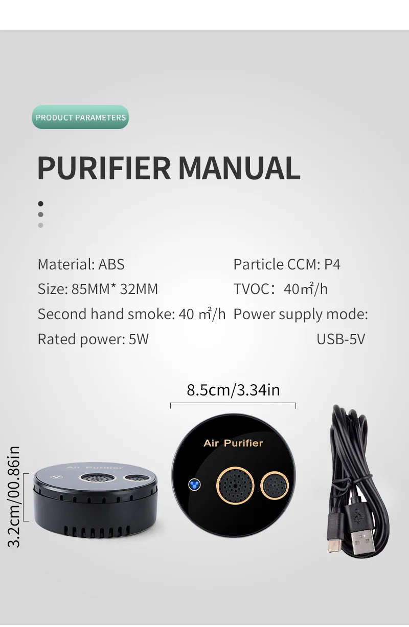 Purificador Portátil para ar do Carro com núcleo duplo