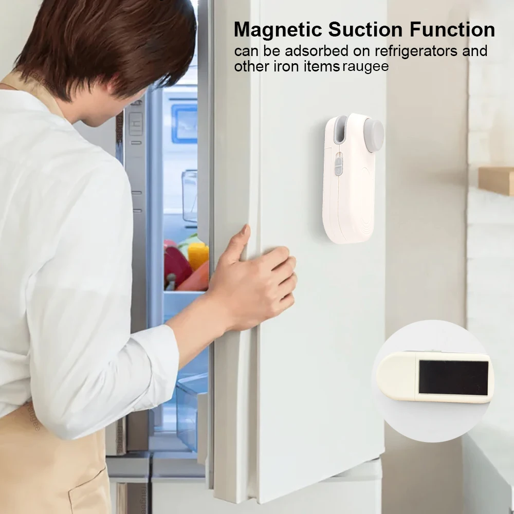 【Portable and Convenient】- Designed with a compact size, this raugee bag sealer heat seal is small and portable, making it easy to carry in your bag. The magnetic strip lets you attach it conveniently to your refrigerator, and the lanyard provides easy hanging options, making it an essential kitchen gadgets, also perfect for travel, hiking, camping, and other activities.