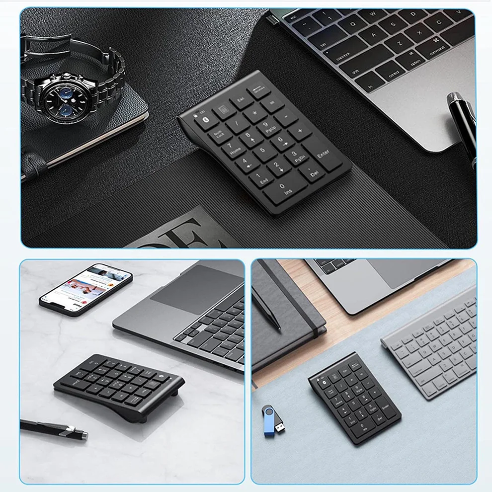 • 【MULTI-FUNCTION 22-KEY NUMERIC KEYPAD】 With 22 full-size keys (enhanced with scissor switches & quiet keycaps), supports 0-10 numeric keys,+,-,*,/, plus NumLock, ESC, PgUp, PgDn, Delete and a shortcut key for quick access to the calculator and improved productivity. The multi function bluetooth numeric keypad is an ideal choice for bookkeepers working on excel, teachers entering grades, office workers for data entry, etc.